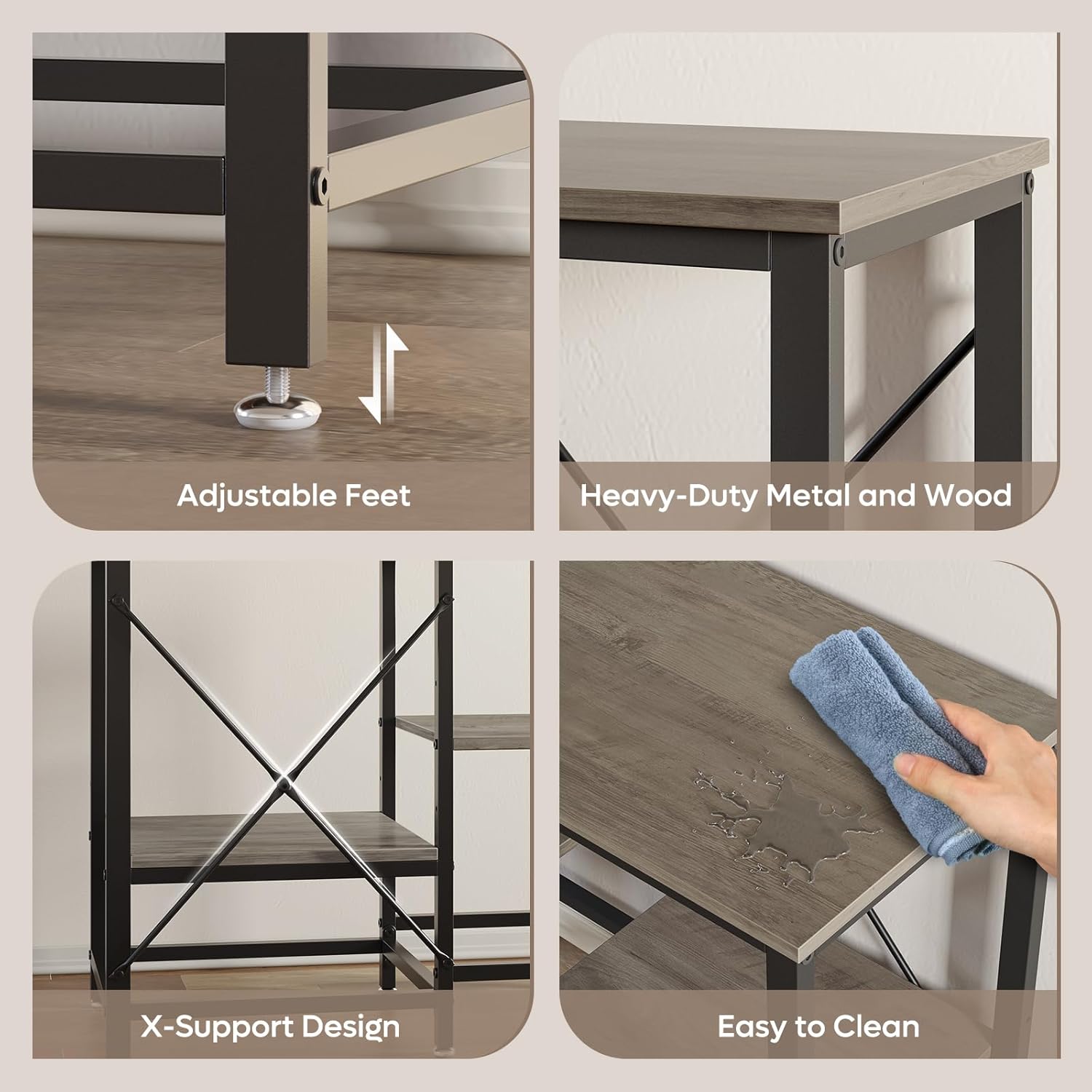 - Heavy-Duty & Stable Construction: Built with sturdy metal and P2-grade engineered wood, supported by 6-legs and X-shape reinforcement, ensuring stability and a weight capacity of up to 264 pounds